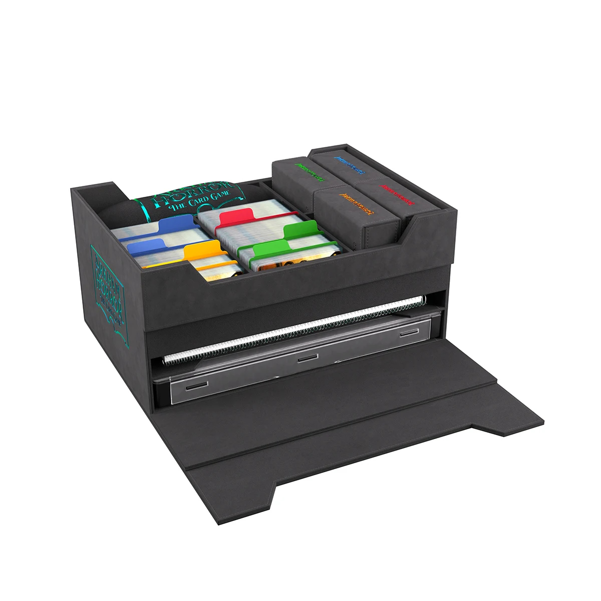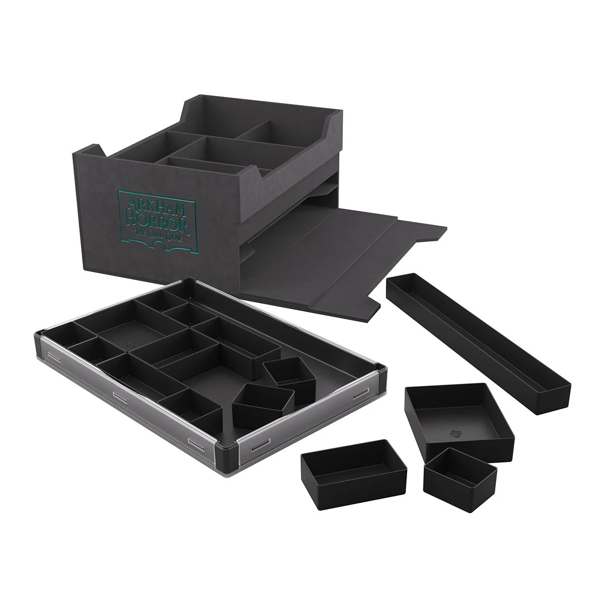 Geräumiger oberer Bereich: Ordnen Sie 4 Ermittlerdeck-Bücher, über 500 Karten mit Hüllen, den Token-Beutel und vieles mehr Unteres Fach: Spezieller Platz für Regelbücher und Kampagnenhandbücher Bonus-Feature: Enthält eine exklusive schwarze Ausgabe unseres Token Silo XL für die flexible Organisation von Spielmarken und kleinen Spielkomponenten Ausgestattet mit dem konvertierbaren System von Gamegenic ist der magnetische Deckel abnehmbar und lässt sich sicher am Boden befestigen, wodurch Sie Platz auf dem Tisch gewinnen und Ihr Setup übersichtlich bleibt. Vereinfacht euer Setup, optimiert eure Spielsitzungen und taucht ein in den Nervenkitzel von Arkham Horror wie nie zuvor!