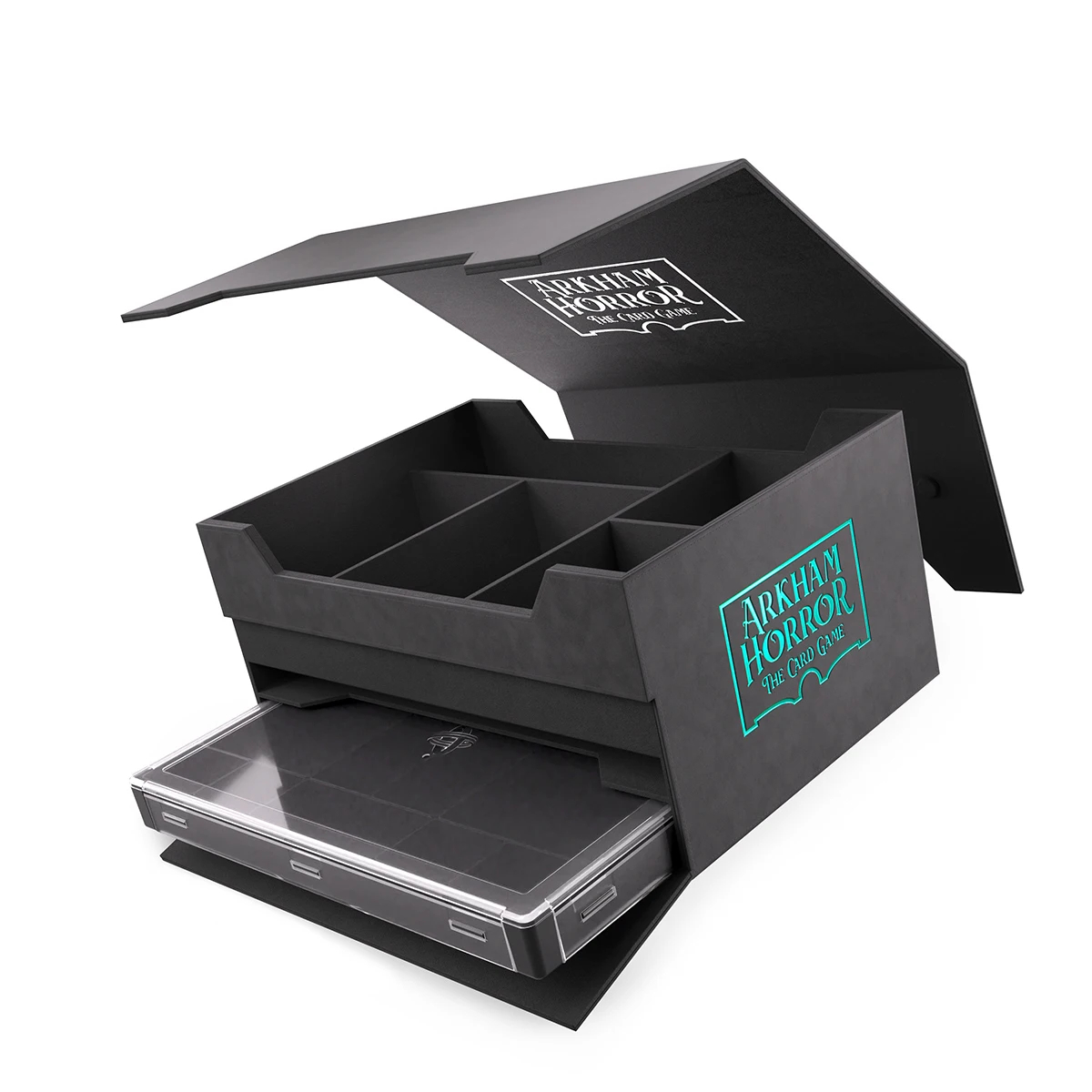 Wir präsentieren die Aufbewahrungslösung, von der jeder Spieler träumt! Die Game Night Chest ist eine unverzichtbare Premium-Aufbewahrungslösung für jeden Fan von Arkham Horror: Das Kartenspiel. Sie wurde speziell für passionierte Spieler entwickelt und bietet zahlreiche Funktionen, die eure Spieleabende mühelos und unvergesslich machen: