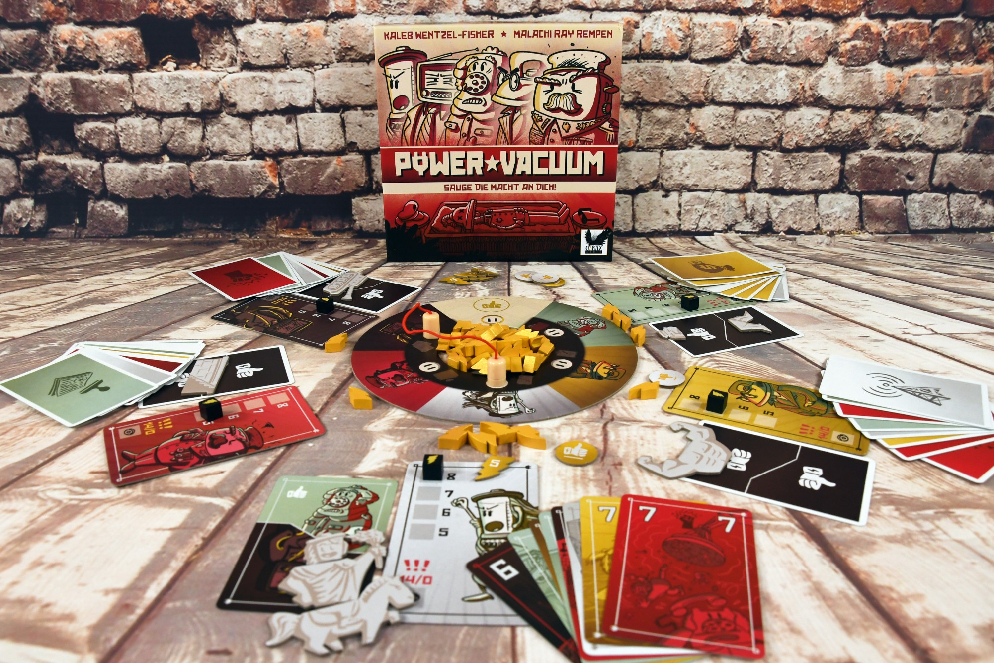Power Vacuum ist ein strategisches Stichspiel mit Wendungen, in dem du durch das Ausspielen von Karten Machtpunkte sammelst oder durch den raffinierten Einsatz des Kontrollplans die Machtverhältnisse neu ordnest.